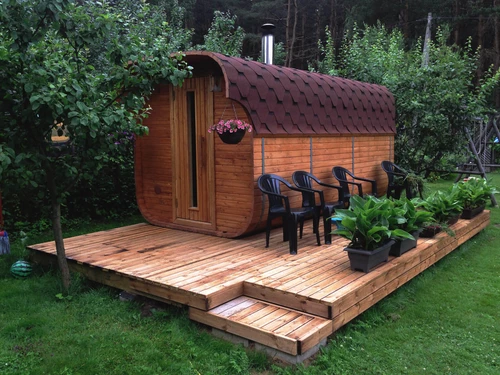 На огородном участке нельзя строить объекты капитального строительства. То есть баню на фундаменте возвести уже не получится. То же самое относится и к сараям, теплицам и т. д. – никакого фундамента. Примеры подходящих бань – модульные бани-бочки, которые можно спокойно перемещать по участку.